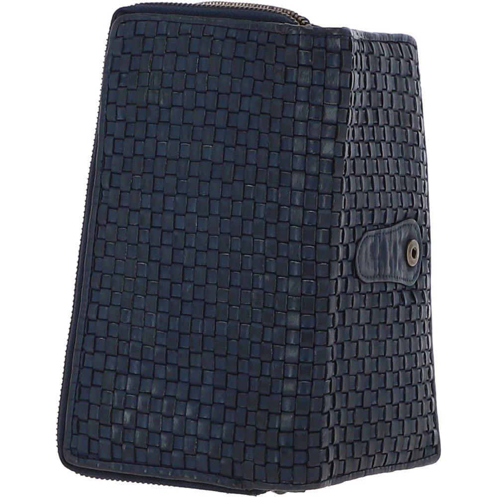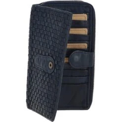 Vintage Woven Leather Zip Around Large 22 Card Coin Note Purse Navy : D-84