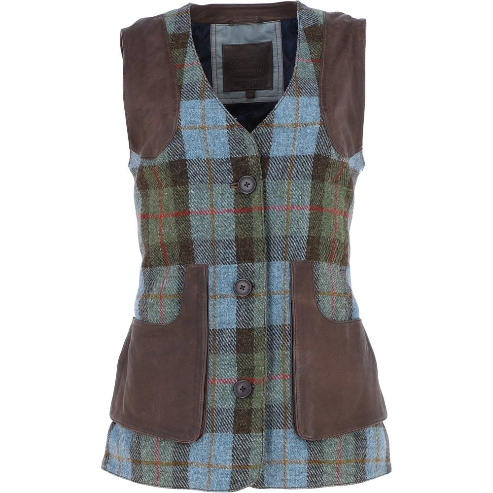 Ashwood Women’s Country Tailored Buttoned Gilet with Leather Trim Brown/Macleod: TW-704-01-BM