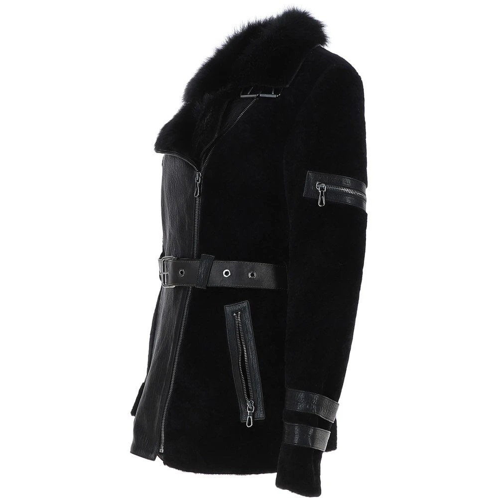 The fitted authentic curvaceous sultry cut of the classic ladies sheepskin aviator jacket is a real crowd pleaser. Fashioned in a soft luxury smooth tailored cut with vintage rough edge finishes. A real feminine jacket with a strong spotlight on luxury shearling leather.