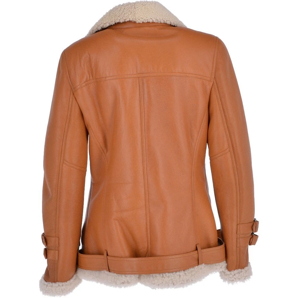 Womens Luxury Side Zip Sheepskin Pilot Jacket Tan : Caitlin