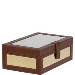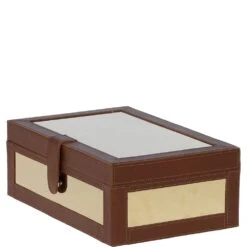 Wood and Aluminium Mirror Storage Box with Tan Leather Trim: AGC1853