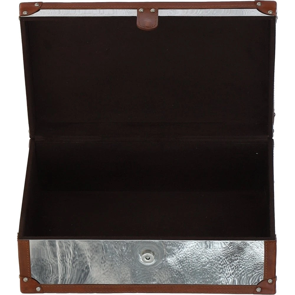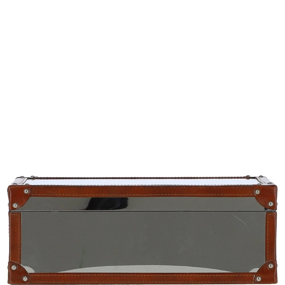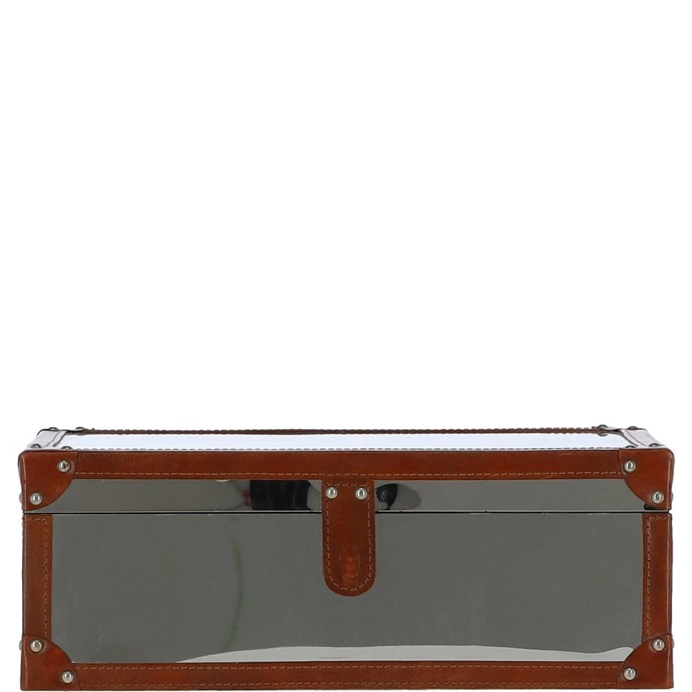 Wood and Aluminium Mirror Storage Box with Tan Leather Trim and Stud Detailing: AGC 31