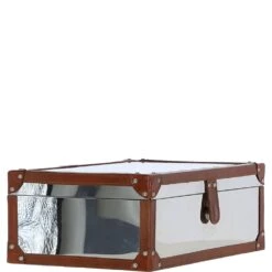 Experience an eloquent union of nature and modernity with our Wood and Aluminium Mirror Storage Box, artistically framed with a luxurious leather trim and meticulous stud detailing. Every element of this exquisite storage box has been thoughtfully designed and crafted, ensuring it is not only a utilitarian masterpiece but also a statement piece that effortlessly elevates the aesthetic of any space.