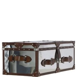 Elevate Your Space with Our Luxurious Wood and Aluminium Mirror Trunk with Leather Trim and Stud Detailing
