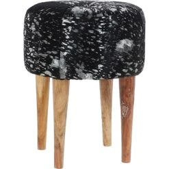 Wooden Legs Hair-on Cowhide Stool Black/Silver: AGC-18