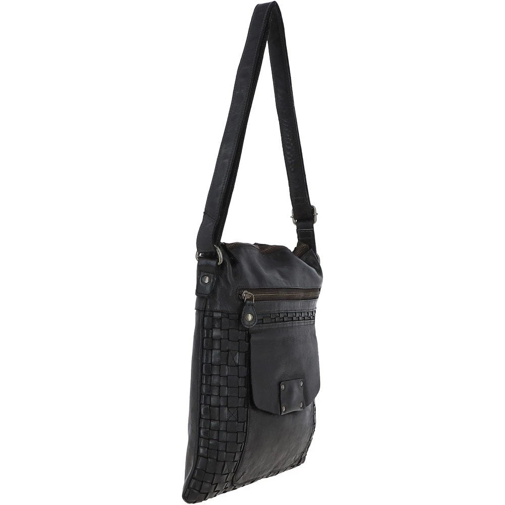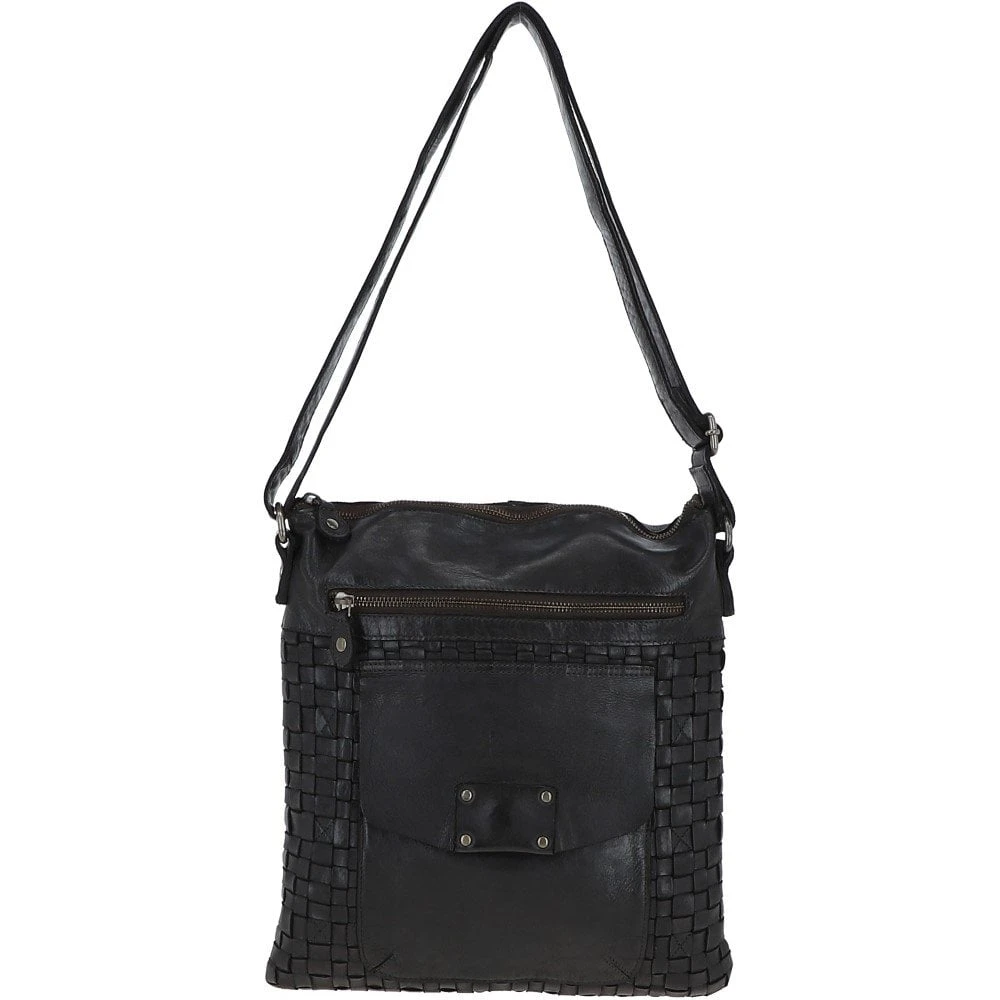 A luxurious vintage wash large crossbody leather bag with a new refined shape. Expect a woven leather detailed front. Open to find a spacious inner compartment, an internal zip pocket and slip pockets for all your essentials.